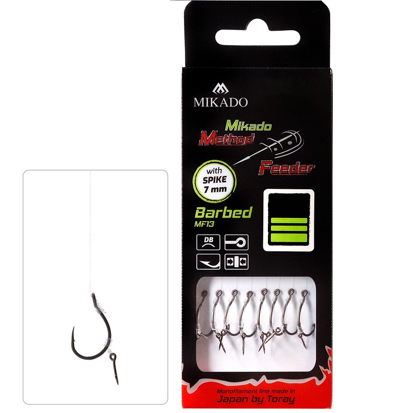 Mikado MF RIG - with spike - Barbed Hooks NO 4 / braid: 0.16mm/10cm - 8 pcs Original price was: € 5,40.Current price is: € 5,29.
